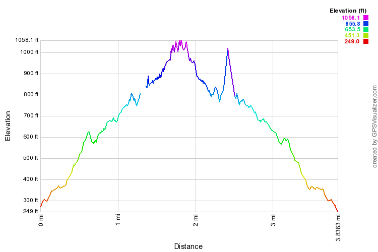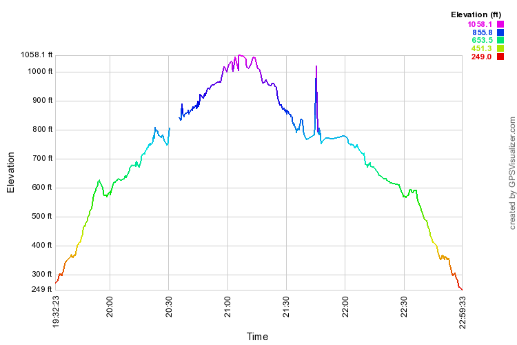 10 hours off local time). The spike just short of 2.5 miles (11:45) is based on fact; I climbed from the stream aiming for the Boy Scout area
